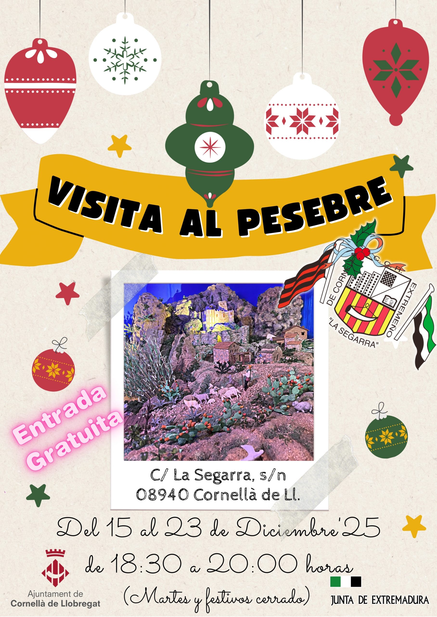Centro Cultural Recreativo Extremeño "La Segarra" de Cornellà Carrer La Segarra, s/n, Cornellà de LlobregatComo ya es tradicional por estas fechas, ya tenemos el pesebre instalado en nuestro recinto social, para que podáis pasar a visitarlo y disfrutarlo en familia.
