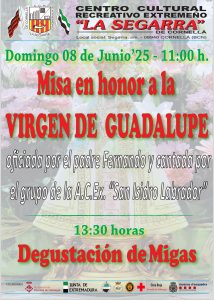 El próximo 08 de Junio celebraremos, como ya es tradicional desde hace más de 20 años, nuestra tradicional Misa en honor a la «Virgen de Guadalupe», patrona de Extremadura. La misa será celebrada por el padre Fernando, de la Iglesia de Sant Miquel de Cornellà, y cantada por los amigos